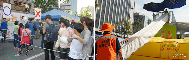 퀴즈 이벤트(좌), 안전체험 이벤트(우) 등에 참가하고 있는 시민들