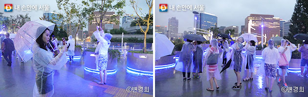 ‘서울로별빛산책’ 참여자들은 비 내리는 서울로7017의 아름다운 밤 풍경을 사진에 담아 실시간으로 SNS에 공유했다. 비로 인해 비록 하늘의 별은 반짝이지 않았지만, 서울로 야경은 빗물에 더욱 반짝이는 듯했다.