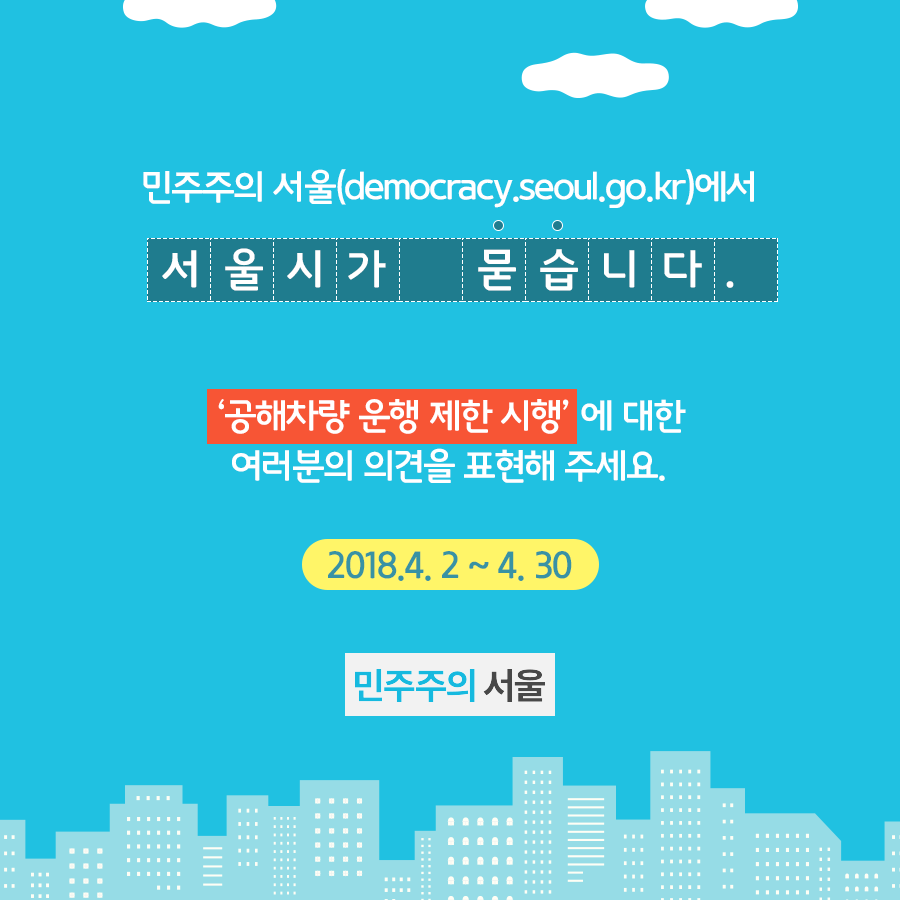 ‘공해차량 운행 제한 시행’에 대한 여러분의 의견을 표현해 주세요.