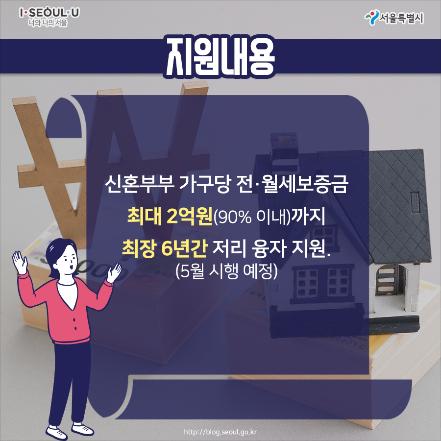 주거비가 부담스러운 신혼부부를 위해 서울시와 한국주택금융공사(HF공사), KB국민은행이 함께 임차보증금 저리 융자를 지원합니다.
