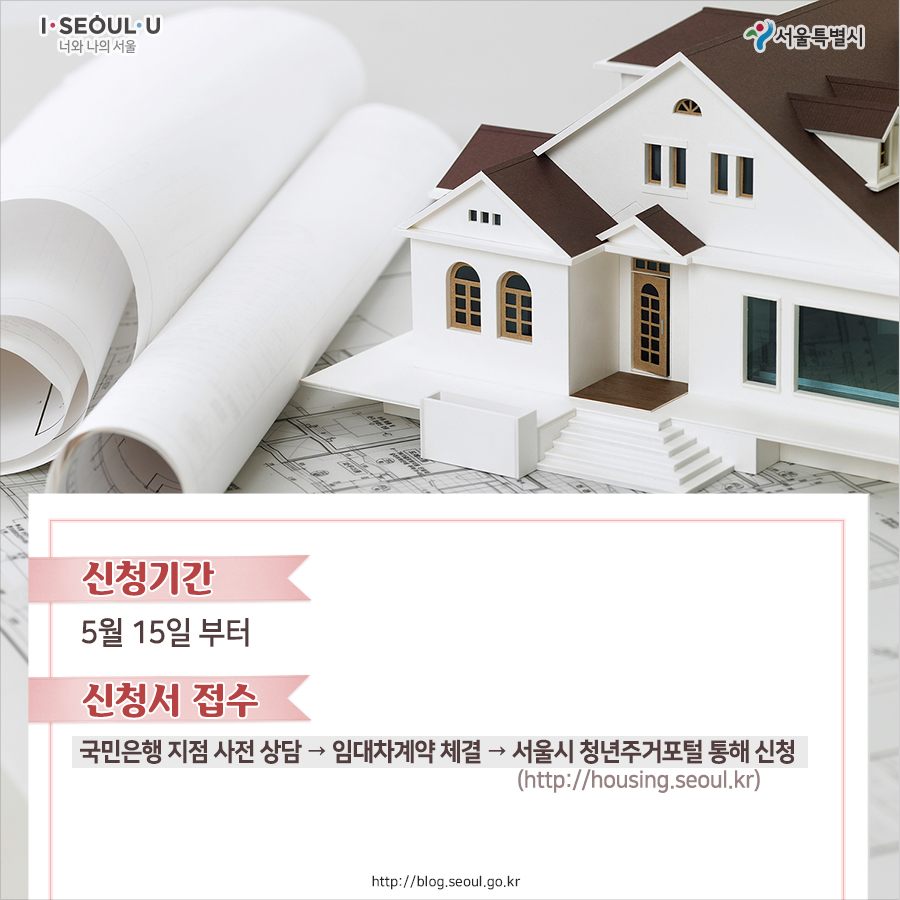 신청서접수 : 국민은행지점 사전상담 → 임대차계약체결 → 서울시 청년주거포털을 통해 신청