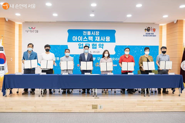 지난해 3월부터 진행한 '민·관·기업 3자 업무협약’ 기간이 종료됨에 따라, 강동구는 지난 6월 19일 구청 대강당에서 전통시장상인회, 환경오너시민모임과 '전통시장 아이스팩 재사용 업무 협약'을 맺었다. 이번 협약을 계기로 구청은 동주민센터와 구청 등 18곳에 설치한 전용수거함을 관리하고, 친환경 수거 시스템 전반을 지원한다고 밝혔다. 환경오너시민모임은 아이스팩 수거, 정리, 홍보, 캠페인 등을 진행하고, 전통시장 상인회는 시장 상인들에게 재사용 아이스팩 수요를 확인해 전달할 계획이다.