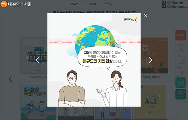 서울시 지진안내포털은 행안부가 제공한 지진대피요령을 소개했다. ©서울시