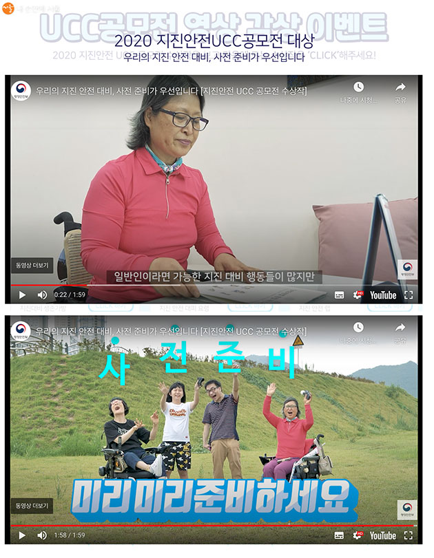 지체장애인의 입장에서 지진을 대비하는 방법을 소개한 2020 지진안전 UCC 공모전 대상 수상작 ©행안부 지진안전 캠페인