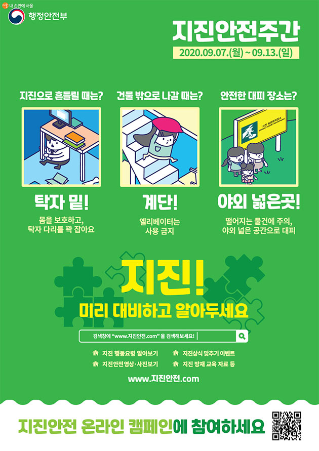 ○ 행안부 지진안전 캠페인(9.7.~11월 말) : http://www.지진안전.com/