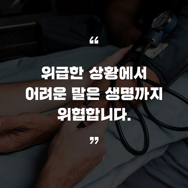 # 위급한 상황에서 어려운 말은 생명까지 위협합니다.