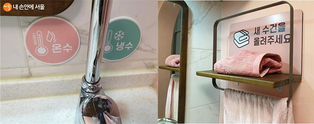 온수와 냉수 표시, 수건보관함도 한눈에 알아볼 수 있다 ⓒ윤혜숙