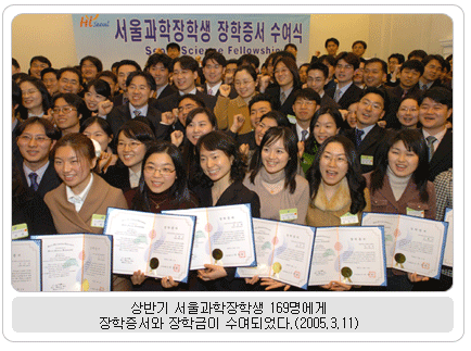 연간 500만원씩 2년간 총 1,000만원의 장학금 지원 미래의 과학한국을 이끌어 나갈 젊은 인재들을 발굴하고, 미래 산업경쟁력의 기반이 될 핵심 기초과학분야를 육성하기 위해 서울시가 발벗고 나섰다. 올 상반기에 이어 하반기에도 이공계 기초과학·기초연구분야 박사과정생을 대상으로 ‘서울과학장학생(Seoul Science Fellowship)’ 142명을 선발, 2005년 가을학기부터 등록금을 지원하기로 한 것. 서울시는 2일 오전 10시 시청본관 태평홀에서 장학증서 수여식을 갖고, 하반기 서울과학장학생 142명에게 장학증서와 함께 연간 500만원씩 최대 2년간 총 1,000만원의 장학금을 지급할 계획이다. ‘서울과학장학생’은 서울시가 기초과학·기초연구분야 핵심인력양성을 위한 기반조성을 위해 매년 30억원을 투입해 연간 600명에게 500만원의 장학금을 지급하는 사업으로 올 상반기에 처음 시작되었다. 이미 상반기에 169명을 선발한데 이어 하반기에도 142명을 선발해 장학금을 지급하며, 2006년에는 전체 수여자가 600여명에 이를 것으로 전망하고 있다. 특히 이번에는 장학대상을 지방대학으로 확대해 부산대학교 등 10개 지방대학에서 선발된 10명의 장학생이 포함되었는데, 서울시 산업국 장석명 산업지원과장은 “이공계 기피현상을 해소하기 위한 서울시의 과학장학생 사업이 타 시·도로 확산될 수 있는 계기가 되길 바란다”고 설명했다.