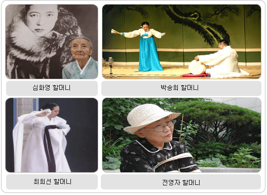심화영(93세) 할머니의 춘향가 ‘쑥대머리’로 막을 올리고, 중요무형문화재 5호 판소리 흥보가 예능보유자인 박송희(80세) 할머니의