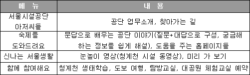 (문의: 서울시설관리공단 기획경영실 ☎ 02-2290-6125) | ||