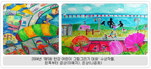 ‘내가 아는 한강’ 주제로 풍경화, 상상화 분야 가을을 재촉하는 듯 어느새 한강변에 코스모스꽃이 한창이다. 서울시민이라면 누구에게나 친근한 한강... 그렇다면 어린이들의 눈에 비친 가을 한강은 어떤 모습일까. 서울시 한강관리사업소는 오는 22일 서울에 있는 초등학교 4~6학년 어린이를 대상으로 ‘제7회 한강 어린이 그림그리기 대회’를 개최한다. 어린이들에게 한강을 사랑하는 마음을 키우고 소질을 계발할 수 있는 기회를 주고자 매년 실시하고 있는 이 대회는 올해에는 한강시민공원 뚝섬지구 벽천마당에서 펼쳐지게 된다. 한강을 주제로 한 풍경화는 물론이고, 미래의 한강의 모습을 담은 상상화까지 어린이들의 동심과 한강사랑을 마음껏 그림으로 뽐낼 수 있는 자리가 될 것이다. 해마다 500여명의 어린이들이 참가해 가족과 한강에서 즐거웠던 모습, 상상 속에서 그리던 수중도시, 커다란 연을 타고 한강 위를 가로지르는 모습 등 풍부한 상상력과 창의성을 담은 독특한 작품들을 쏟아내었다. 이번 행사에서도 어린이들의 머릿속에만 잠자고 있던 생각들을 이끌어 내기 위해 ‘내가 아는 한강’을 주제로 진행되며, 크레파스, 그림물감, 파스텔 등 다양한 재료를 통해 표현력을 향상시킬 예정이다.