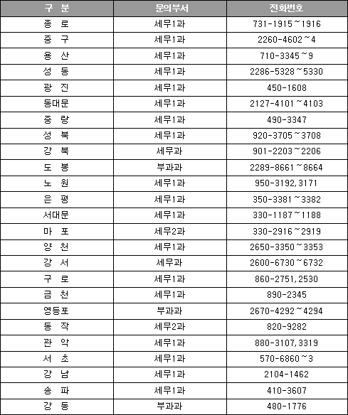 ■ 문의 : 서울시청 세제과 평가1팀 ☎ 02-3707-8630~8631,8526 | ||
