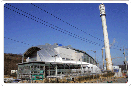 이외에도 쓰레기 소각 후 발생하는 소각 잔재물을 3% 미만으로 낮추어 매립 부담도 덜어냈다. 일반 소각장은 보통 소각량의 15~19%가 소각 잔재로 발생한다. 이처럼 소각 잔재물이 줄어든 것은 잔재물을 이용해 벽돌이나 보도블록, 도로 보조기층재 등으로 재활용했기 때문이다. ■ 인근 공원과 어우러지게 건설된 친환경적 시설