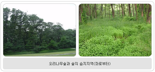 또 오리나무가 자라는 곳곳에 물웅덩이와 소규모 수로가 있어 물봉선, 삿갓사초, 애기나리, 둥굴레, 붓꽃 등 다양한 습지성 식물이 자라는 한편 서울시 보호종인 오색딱다구리, 제비, 꾀꼬리, 박새 등도 출현하는 생물다양성이 풍부한 지역이다. 특히 문화재관리구역 내에 위치한 이곳은 지난 2001년에 실시한 우수생태계 정밀조사 결과 보전가치가