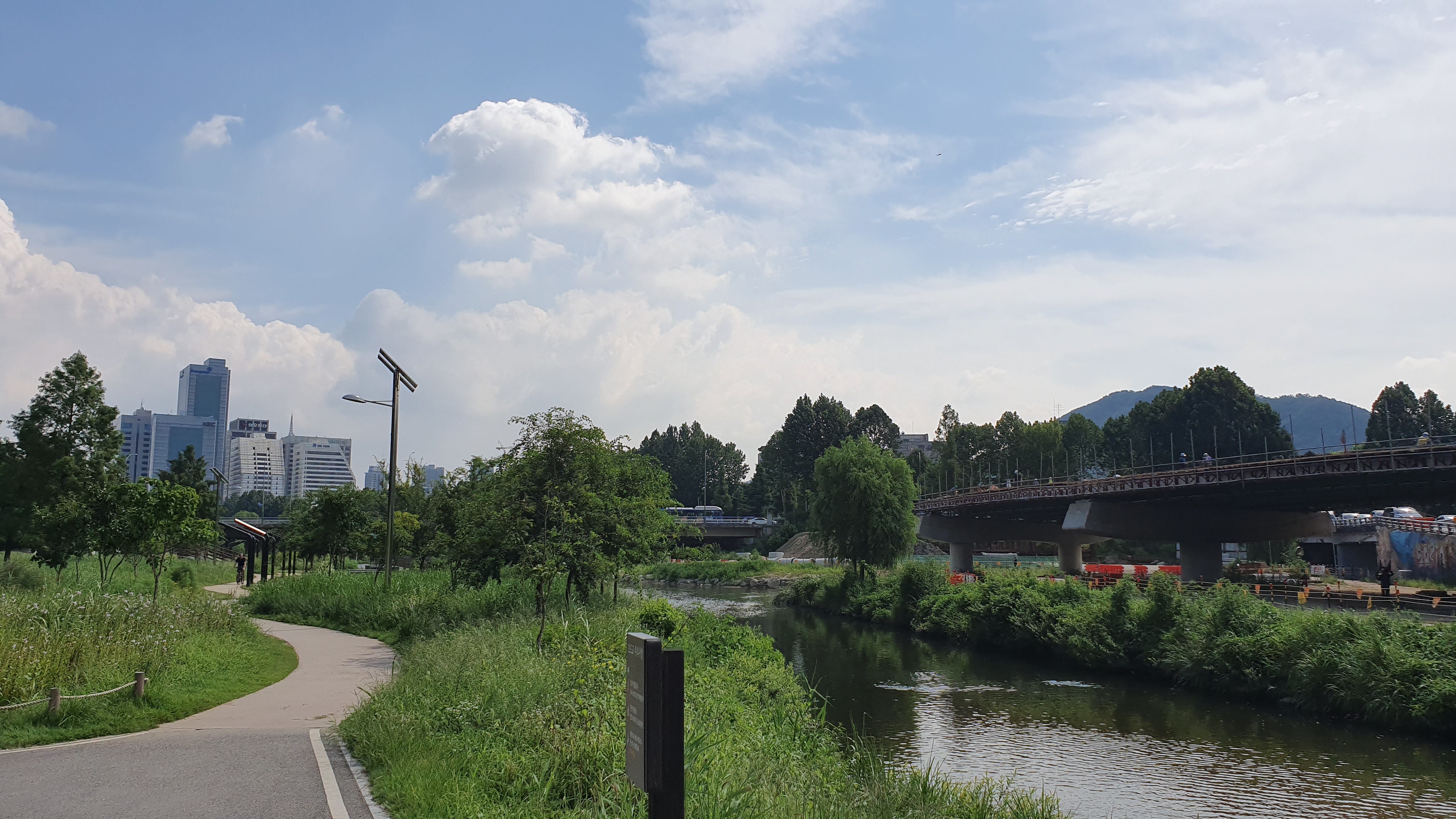 [전기셔틀카를 타고 돌면서 찍은 양재천의 풍경 ; 도심속의 푸르름이 돋보인다 (C)장혜경]