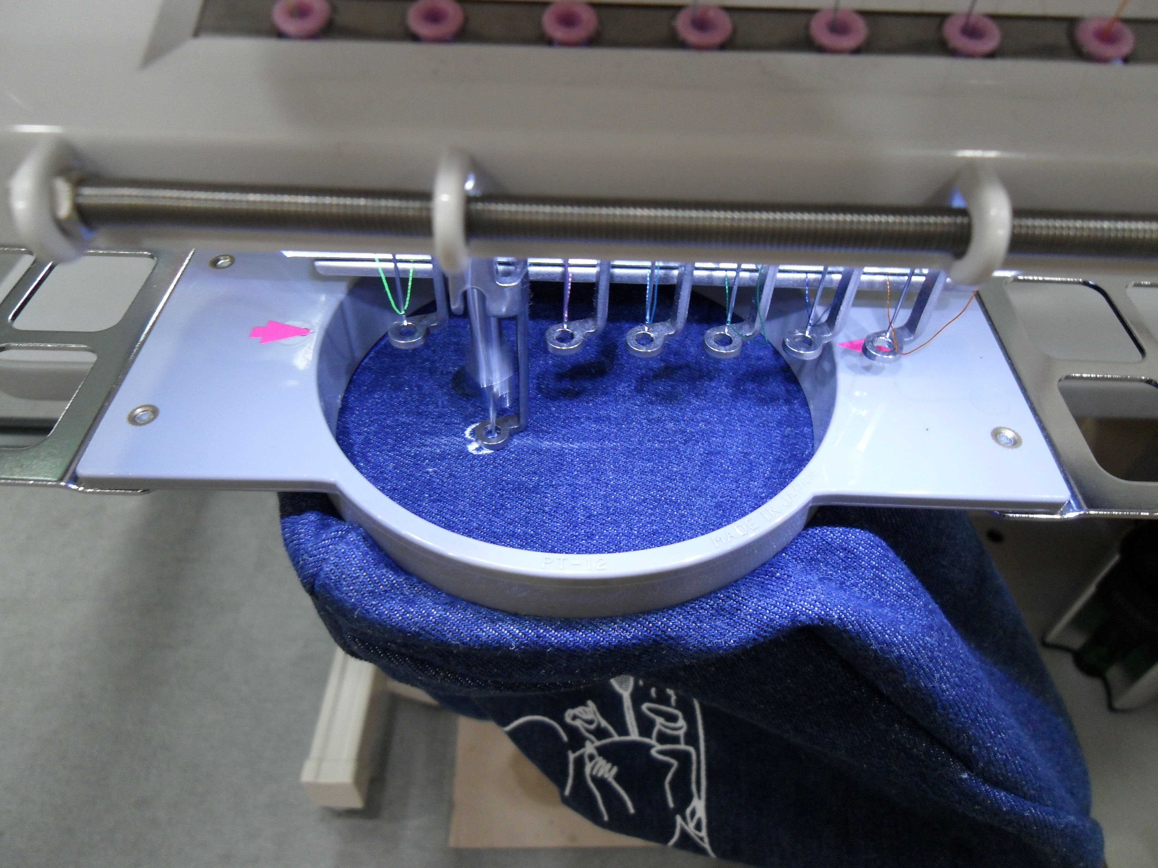컴퓨터 자수기로 가방에 자수를 새기는 모습 ⓒ한고은