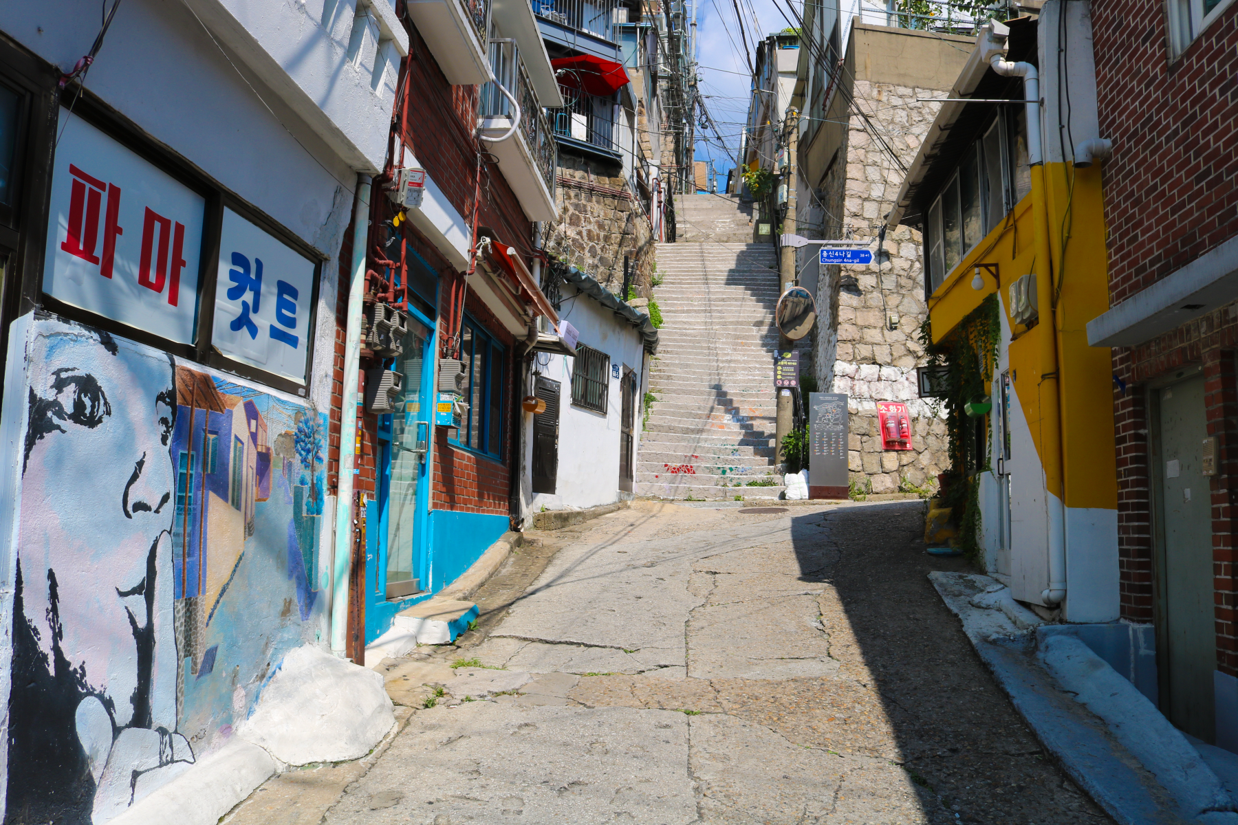 또한 형형색색의 벽화들이 골목 사이사이에 아름답게 수놓아져 있다. 오래 되어 칙칙해 보일 수 있는 동네의 모습을 벽화라는 예술의 색채를 입혀 꾸며 놓은 것이다.