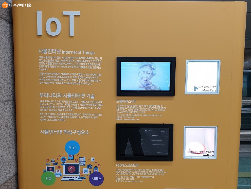 예를 들어 IOT 사물인터넷에 대한 콘텐츠 전시물에는 사물인터넷은 각종 사물에 센서와 통신기능을 내장하여 인터넷에 연결하는 기술이라고 설명하며, 우리나라의 사물인터넷 기술의 역사와 함께 관련 기업에 대한 소개와 제품도 보여준다. 단순한 설명만이 아닌 실제 기업과 제품에 대해 보여주고 있어 쉽게 이해할 수 있다.
