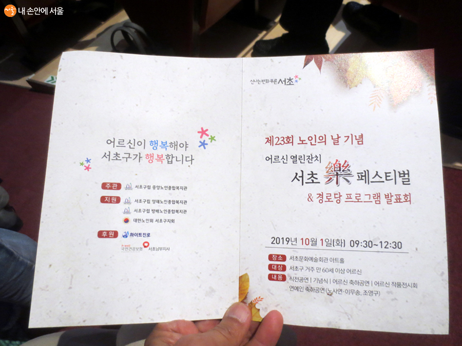 서초구에서 열린 노인의 날 기념 행사 안내장 ⓒ박칠성