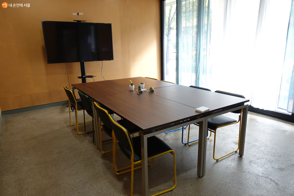 회의실은 소규모 모임, 회의, 멘토링, 상담 위한 공간이다. 대관료는 2시간에 1만원이다. 수용인원은 최대 8명. 대관 가능한 시간은 월·화·목·금·토요일 오전 10시부터 오후 10시까지다. 단, 매주 수요일은 서울시일자리포털(job.seoul.go.kr)을 통해 무료로 대관 가능하다. 세미나 및 회의실은 모두 사전 대관신청 후 사용 가능하다.