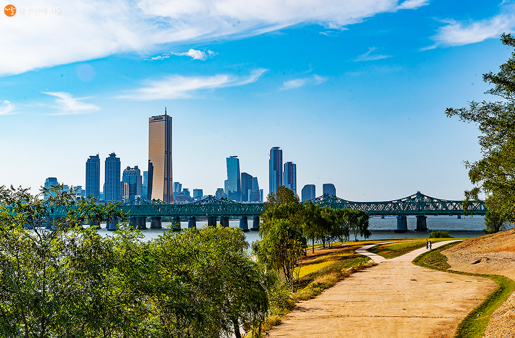 산책로에서 바라본 한강철교와 어우러진 63빌딩 참으로 아름답다 Ⓒ권영학