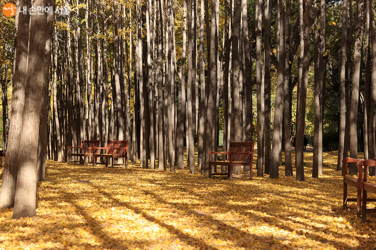 서울숲을 걷다 보면 만나게 되는 은행나무 길과 메타세콰이어 길