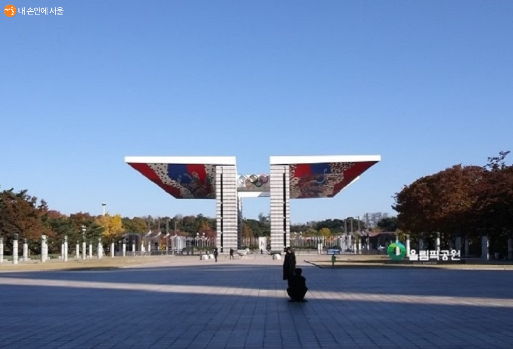 몽촌토성역 1번 출구를 나오자 '세계 평화의 문'이 보인다. 세계 5대륙 평화의 상징, 오륜기를 중심으로 양쪽 날개에는 대한민국 전통사상을 표현하는 사신도가 그려져 있다. 서울 평화선언이 쓰여 있는 평화의 성화가 타오르고 있다. 오륜기 다섯 개의 고리가 하나가 되어 평화롭게 손을 잡는다. 88올림픽의 감동이 느껴진다.높은 가을 하늘에 우뚝 솟은 세계 평화의 문, 눈이 부시다. 가슴이 뭉클하다.