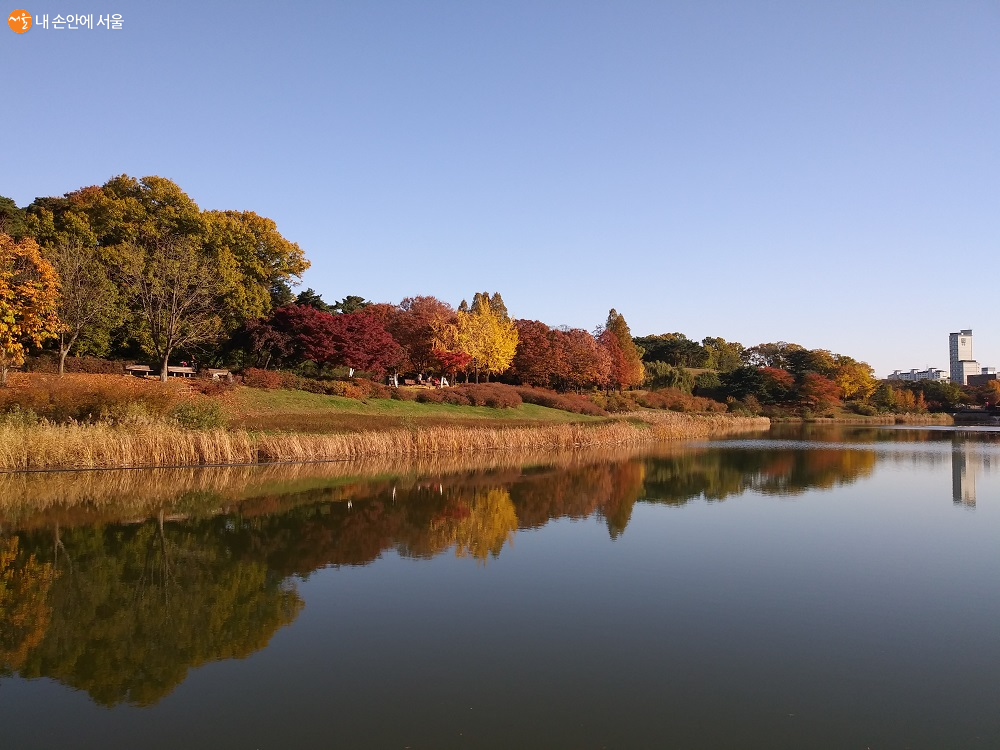국기광장을 지나 몽촌 호숫가를 걷는다. 푸른 하늘과 푸른 호수가 갈색 억새와 녹색 나무 가을 옷으로 갈아입고 정답게 만난다. 하늘 위에서, 호수 안에서, 서로를 바라본다. 함께 할 수 있기에 아름다운 세상이다.
