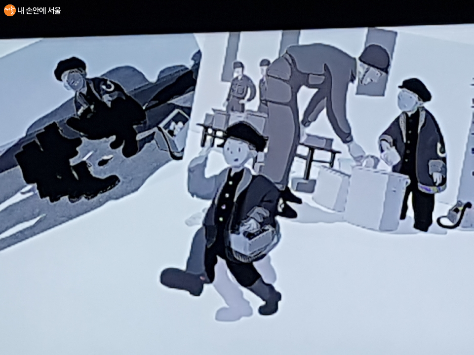 환영 인파 대신 미국 군인들이 임정 요인들을 맞고 있는 애니메이션 장면 캡처