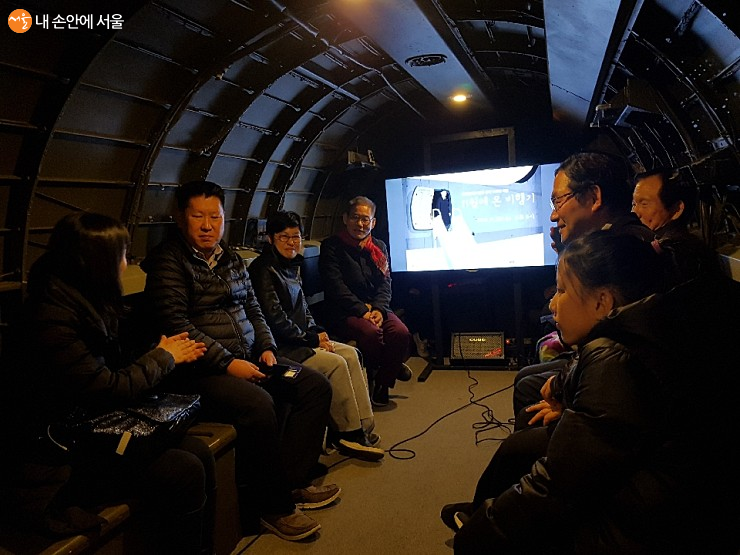 C-47기 안에서 애니메이션을 관람 중인 참여자들 ⓒ박세호