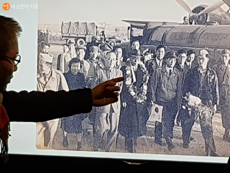 그러나 애석하게도 바로 그날 김구 주석을 비롯한 상해임시정부 요인들이 C-47 수송기에 타고 해방된 조국에 아무런 공식 환영 행사도 없이, 개인자격으로 돌아와야 했던 안타까운 장면들이 사진으로 남아 있었다. 행사 진행자의 설명이 끝난 후 참석자들은 먹먹한 심정으로 각자의 생각한 바와 느낀 바를 발표하면서 우리 역사를 되돌아보는 귀한 시간을 가졌다.