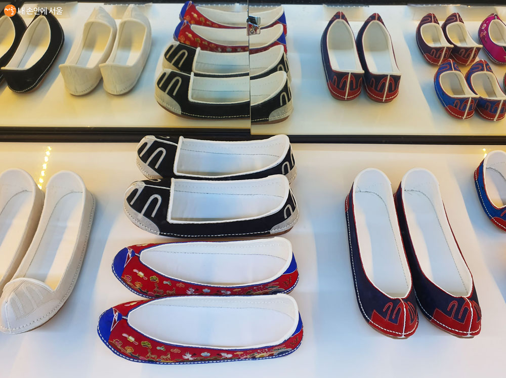 당혜(唐鞋)는 조선시대 양갓집 부녀자가 신었던 신으로 코와 뒤꿈치에 당초문을 놓아 만든 신이다. 안은 융 같은 푹신한 감으로 하고 거죽은 가죽을 비단으로 싸서 만들었다. 태사혜(太史鞋) 신목이 없는 마른 땅에서 신는 신발의 한 가지로 흔히 사대부나 양반계급의 나이 많은 사람이 평상시에 신었고 조선시대 말기에는 왕도 평상복에 신었다. 신울은 헝겊이나 가죽으로 하고 앞코와 뒤축에 전통문양인 태사문으로 장식한 신이다. 태사문은 항상 신의 앞코와 뒤축에 코휘와 칙실을 중심으로 대칭되도록 넣었다. 십장생 수혜(十長生 繡鞋)는 신 전체에 아름다운 문양을 수놓은 신으로 흔히들 '꽃신'이라고 부른다. 십장생 수혜는 십장생문 수를 놓아 장수를 기원했다.