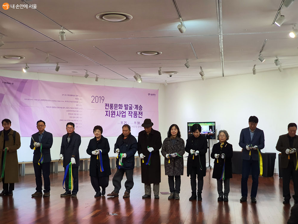 전통문화 발굴·계승 지원 사업 작품전 참여 작가들의 테이프 커팅식 ⓒ정인선