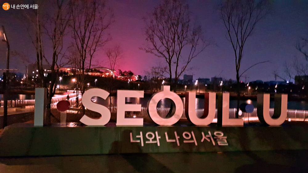 크리스마스 장식처럼 빛나는 조명과 아이서울유 조형물 ⓒ한형준