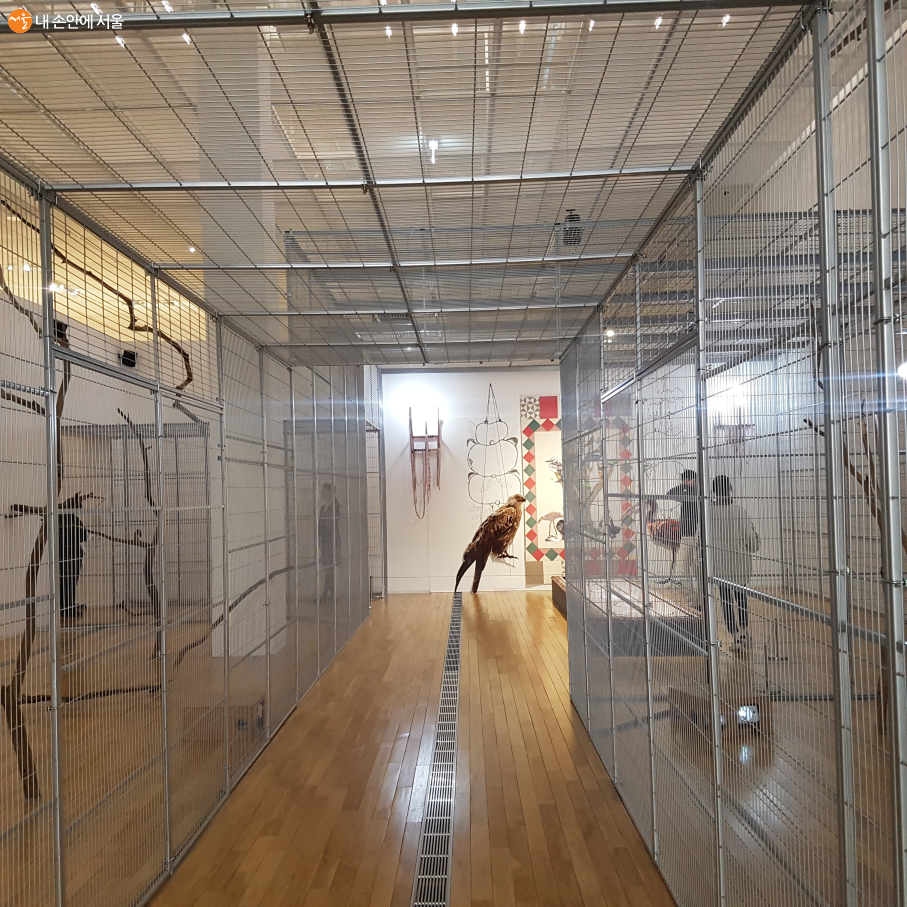 새장을 전시부스 안에 설치하여 방문객에게 색다른 경험을 제공해 준다 ©김학민