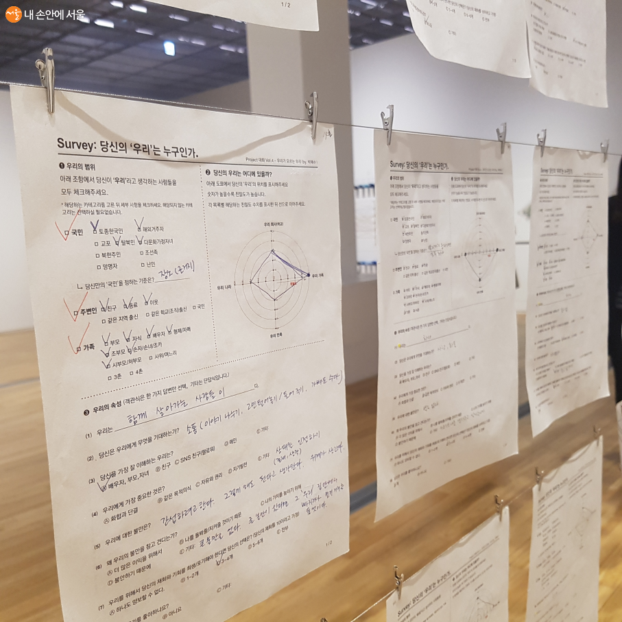수많은 사람들이 작성한 설문지를 통해 '우리' 란 무엇인지에 대해 생각해 볼 시간을 제공한다. ©김학민