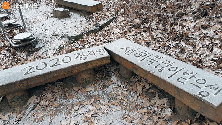 상서로운 눈, '서설'이 조금 내렸다. 반가운 마음에 글귀를 적어보았다. ©이영남