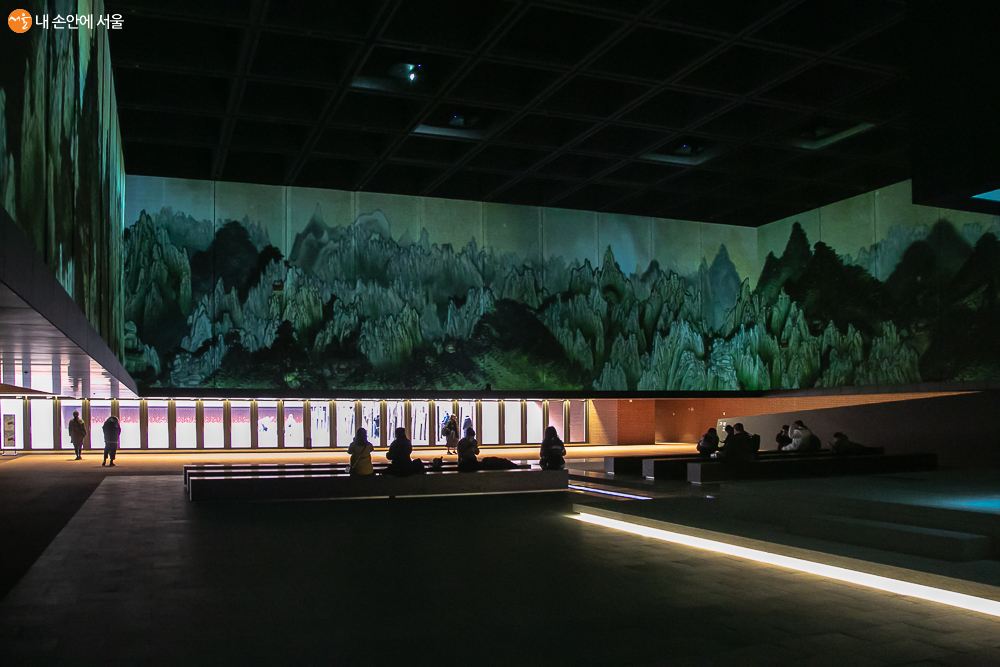 B3 관람객을 위로하는 공간(콘손레이션홀)에 정선의 '금강내산전도'가 비친다 ⓒ이한웅