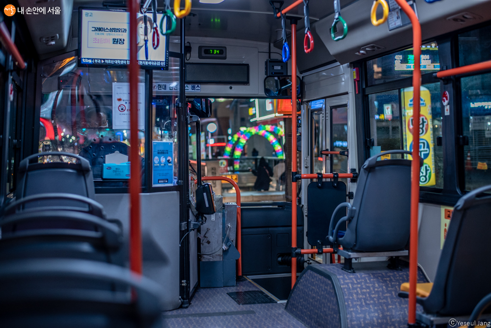 버스 내부는 여느 버스와 다를 바 없지만, 600원이라는 저렴한 가격에 이용 가능하다. ©장예슬