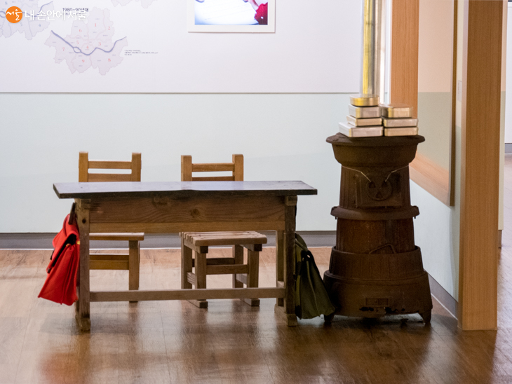 나무로 만든 투박한 책상과 걸상, 겨울 난로. 난로 위에 도시락 올려놓고 먹던 맛을 요즘 아이들이 알까? ⓒ오세훈