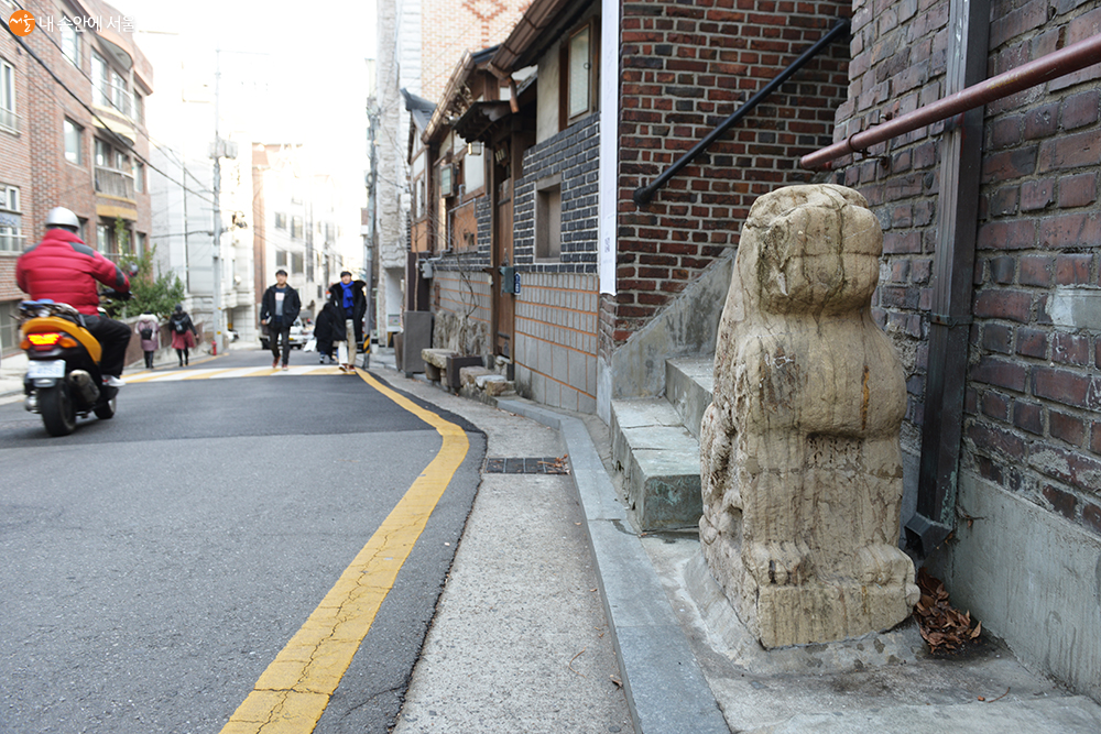 서촌 골목길을 지키는 돌 사자상 2020.02..08 촬영 ©오도연