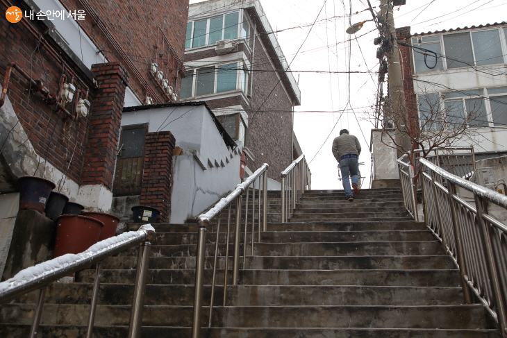 영화에서는 ‘박 사장 집’으로 향하던 계단이 슈퍼 골목 안쪽에 자리한다 ©이선미