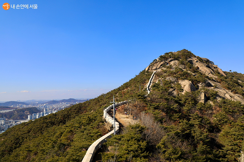 산세를 따라 조성된 한양도성과 멀리 남산서울타워가 보인다 ⓒ양인억