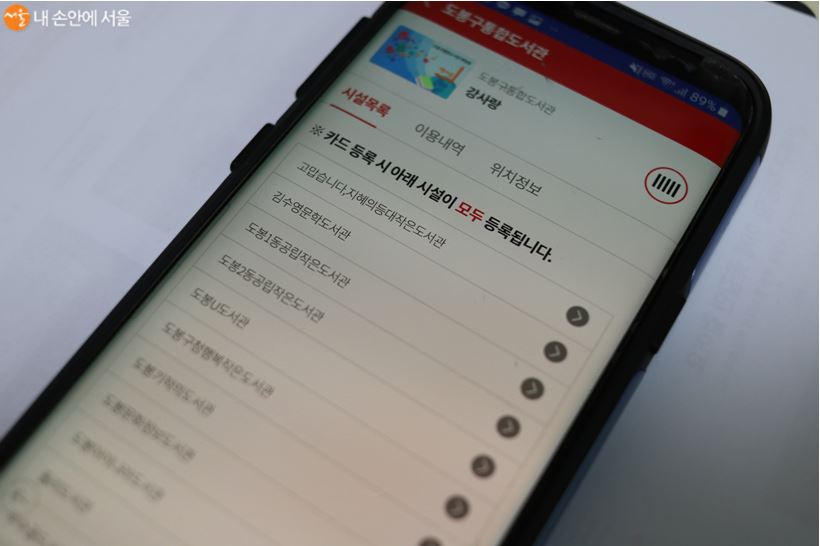 자주 이용하는 도서관을 사용 등록해보았다. 한번 등록으로 관련 구립도서관들이 모두 등록되었다. ⓒ강사랑