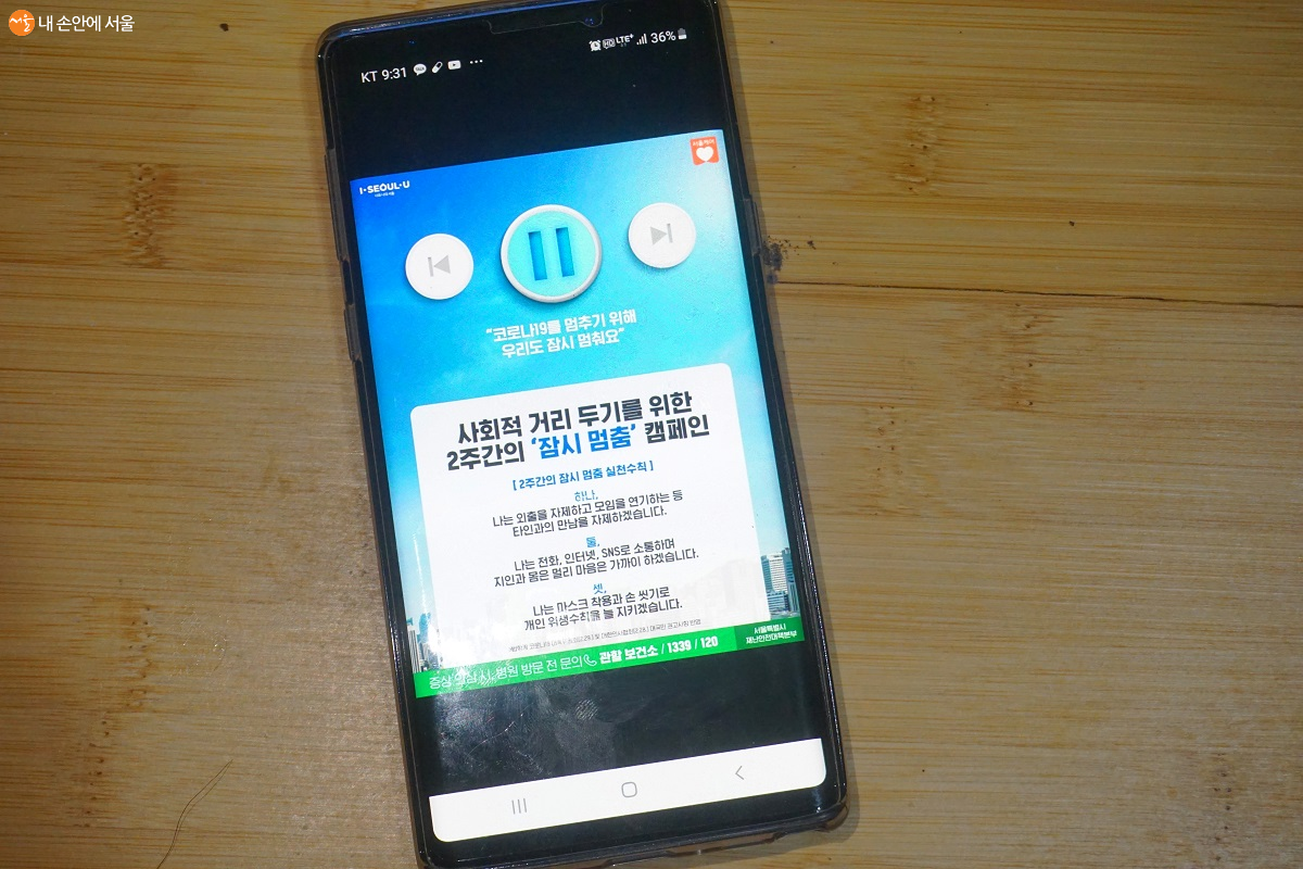 요즘 가장 흔한 인사말이 되었다. 코로나19 확산에 따라 건강에 대한 염려가 더욱 커졌기 때문이다. 서울시에서는 이를 해결하기 위해 2주간 ‘잠시 멈춤’ 캠페인을 실시하고 있다. 불필요한 외출이나 모임을 자제해 사람들 사이의 거리를 두는 캠페인이다. 코로나19 확산을 줄이기 위해서는 사람 사이 접촉을 최소화하는 것이 가장 중요하다. 많은 회사들과 공기관에서는 격일 출근이나 2주간 재택근무를 실시하고 있다. 시민기자인 필자 역시 2주간 재택근무하며 2주간 ‘잠시 멈춤’ 캠페인에 동참하고 있다.