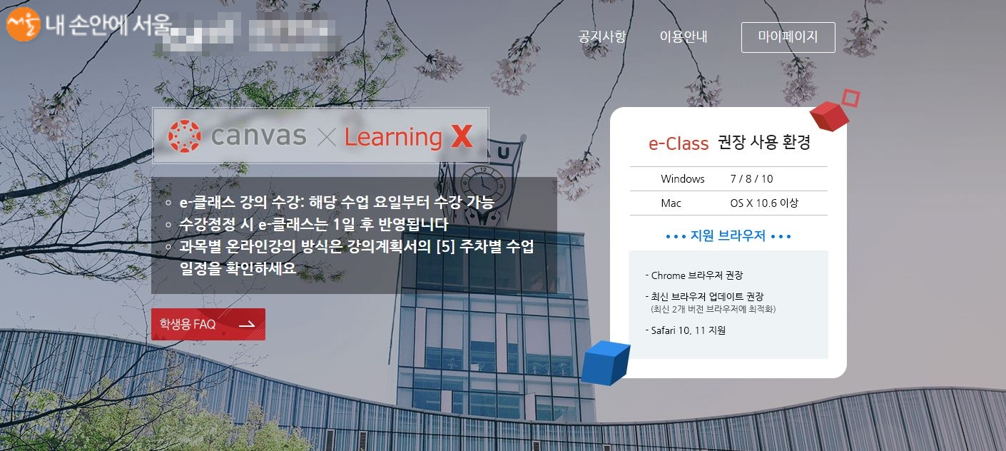 학교 홈페이지에 온라인 강의 진행에 관한 안내가 공지되었다.