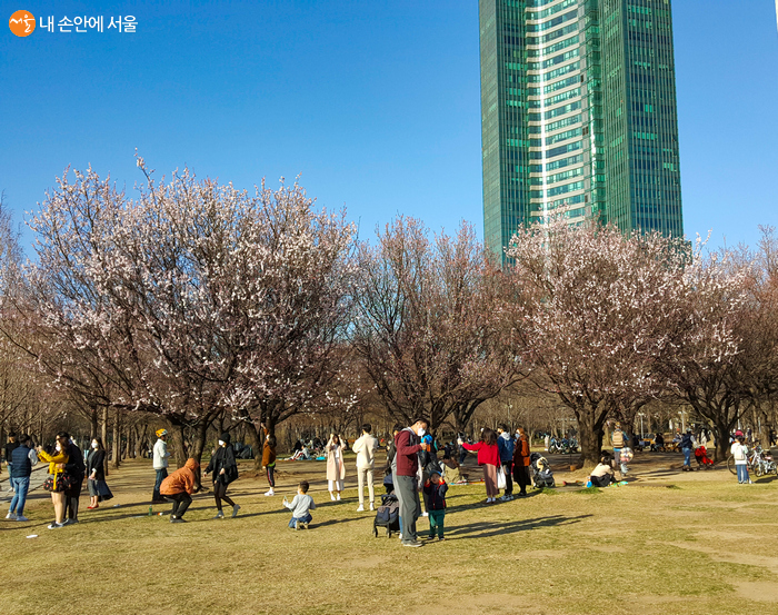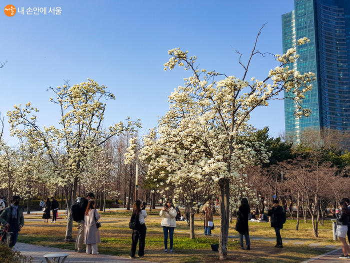 서울숲에 향긋한 봄 향기가 흩날리기 시작한다. 따뜻한 봄기운으로 가득했던 주말, 많은 시민들이 봄을 찾아서 서울숲으로 나들이를 떠났다. 서울숲에서 제일 먼저 봄의 향기를 전해주는 것은 관리소 옆 목련이었다. 흐드러지게 핀 목련 밑으로는 서울 시민들이 모여 사진 찍느라 여념이 없었다. 노란 개나리와 진달래도 활짝 피어 봄을 알렸다. 벚나무길의 벚꽃은 1주일 정도가 지나면 그 자태를 내보일 것 같아 기대가 된다.