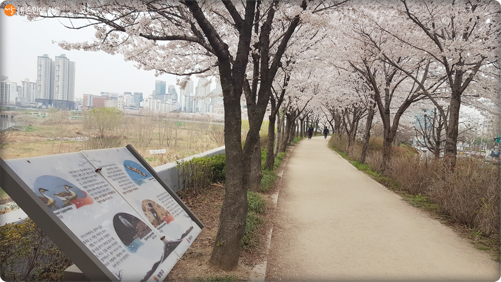 봄이다. 사회적 거리두기 · 마스크 착용하기 · 손 씻기에 유념하며 가볍게 산책을 해보자. 지난 주말 필자도 용기를 내어 서울둘레길 6코스(안양천구간)을 걸었다. 사람이 적은 이른 아침을 택했다. 안양천이 흘러들어 한강과 만나는 합수부에서 출발했다. 만개한 벚꽃이 꽃단장을 한 여인처럼 활짝 웃어 반겨주었다. 안양천을 따라 양쪽으로 넓은 수변공원이 석수역까지 16km나 이어진다. 황톳길, 서울둘레길, 자전거길, 제방길 등 다양한 산책로가 있다.