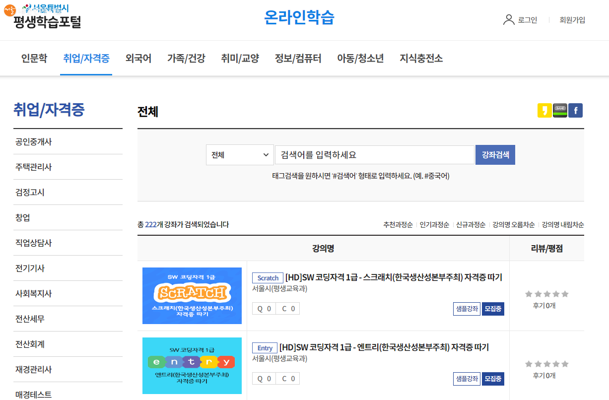 ■ 서울시평생학습포털 : http://sll.seoul.go.kr/
