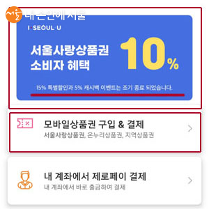 서울사랑상품권 및 선불카드는 소상공인 지원 및 지역 상권 활성화를 위해 한시적으로 발행된 카드로 수령 후 변경·환불이 불가능하다. 서울사랑상품권 전용 앱 사용이 어려운 어르신께는 선불카드 신청이 편리하다.